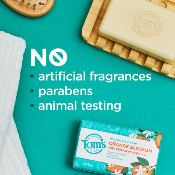 - Three 5 oz bars of Tom's of Maine Orange Blossoms Natural Beauty Bar Soap For Men and Women, made with Moroccan argan oil